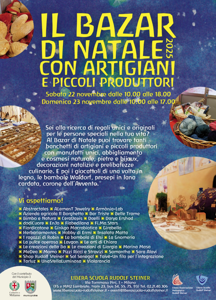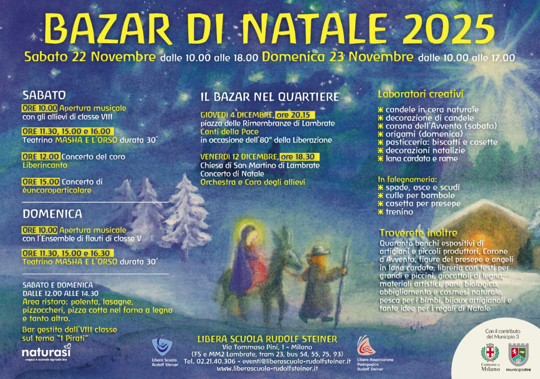 LIBERA SCUOLA RUDOLF STEINER Libera Associazione Via Tommaso Pini, 1 Milano (FS MM2 Lambrate, tram 23, bus 54, 55, 75, 93) Tel. 02.21.40.306