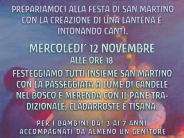 Festeggiamo tutti insieme San Martino, con la passeggiata a lume di candele nel bosco e merenda con il pane tradizionale, caldarroste e tisana.