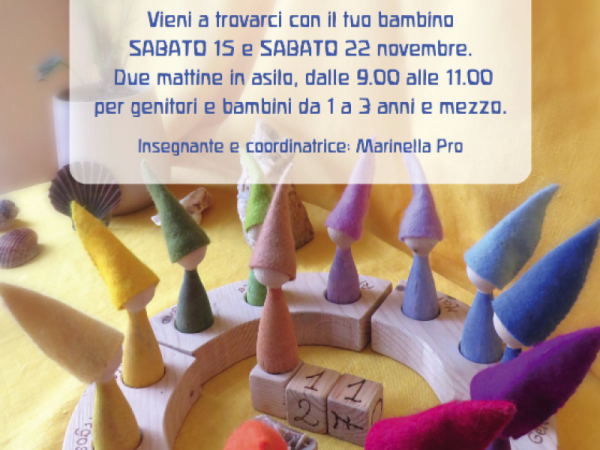 I genitori hanno l'opportunità di confrontarsi tra loro per conoscere i principi delle pratiche ispirate alla pedagogia Waldorf. I genitori esplorano l'importanza del ritmo nella vita domestica, dello sviluppo motorio e linguistico nei primi anni di vita, e come accompagnare il nascente interesse del bambino per il gioco.
