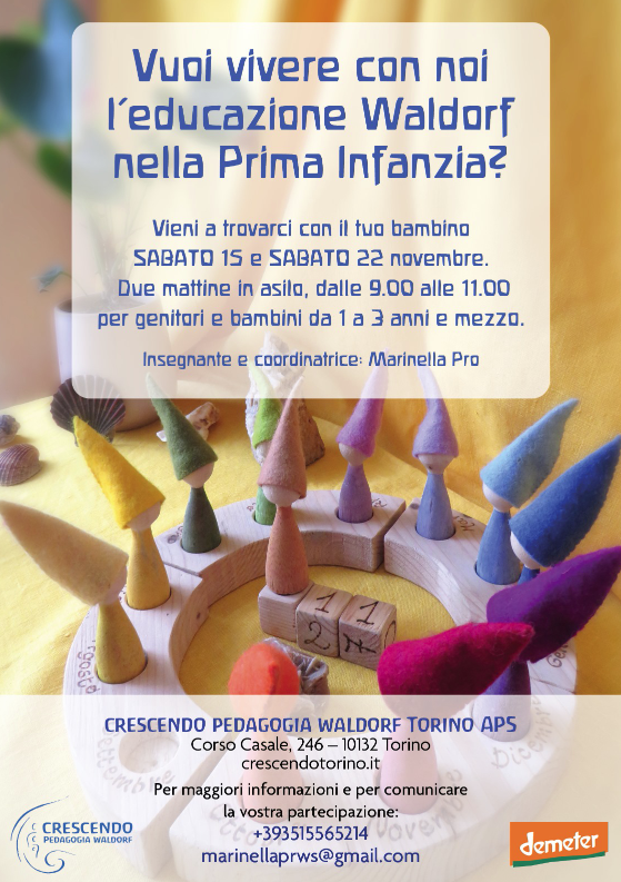 Accompagnati da una maestra di lunga esperienza, potrete immergervi nei ritmi e nelle attività di un asilo Waldorf.