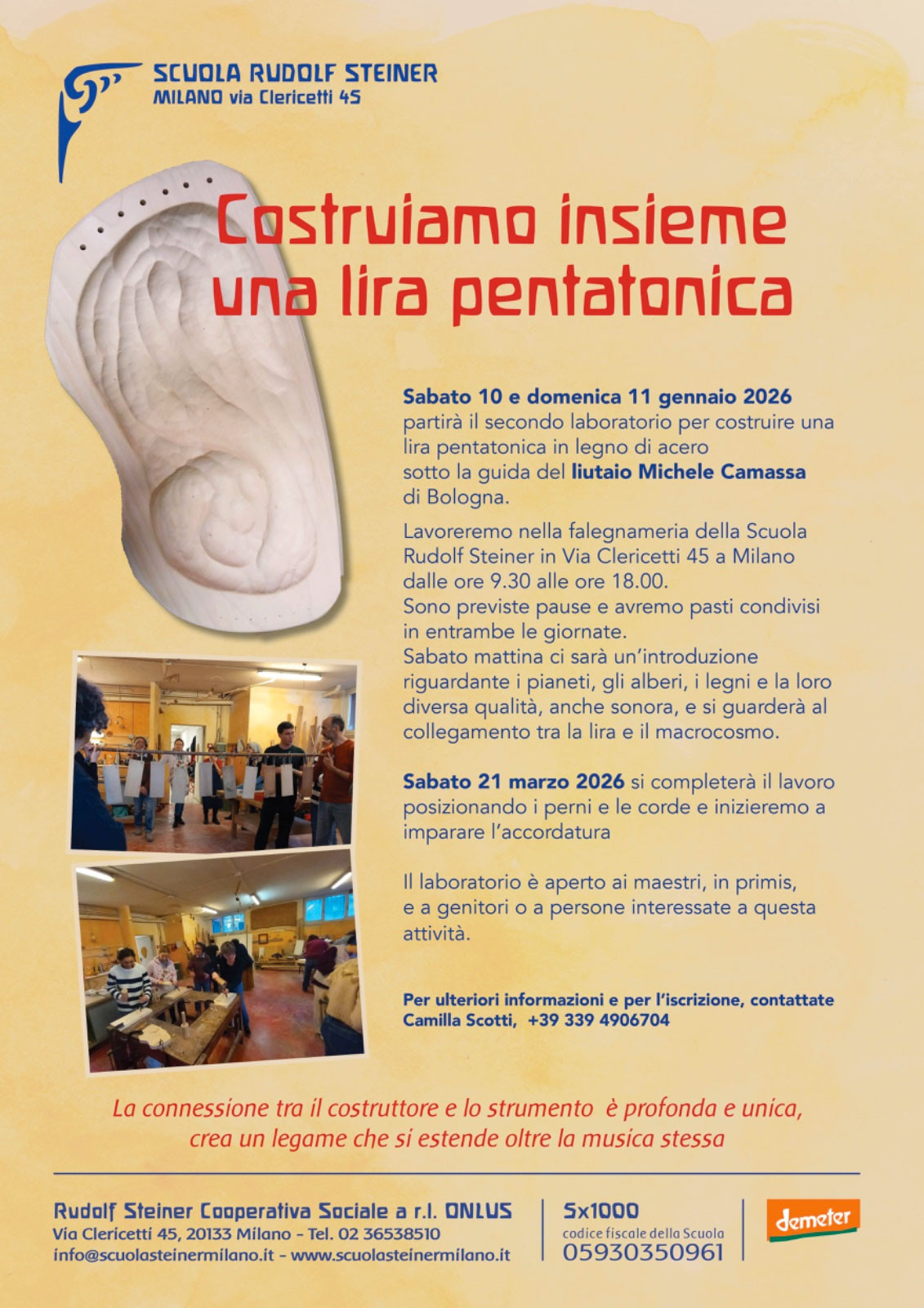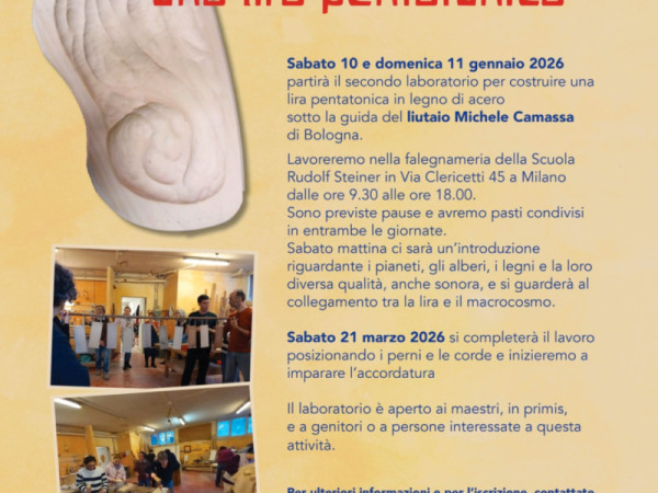Sabato 10 e domenica 11 gennaio 2026 partirà il secondo laboratorio per costruire una lira pentatonica in legno di acero sotto la guida del liutaio Michele Camassa di Bologna.