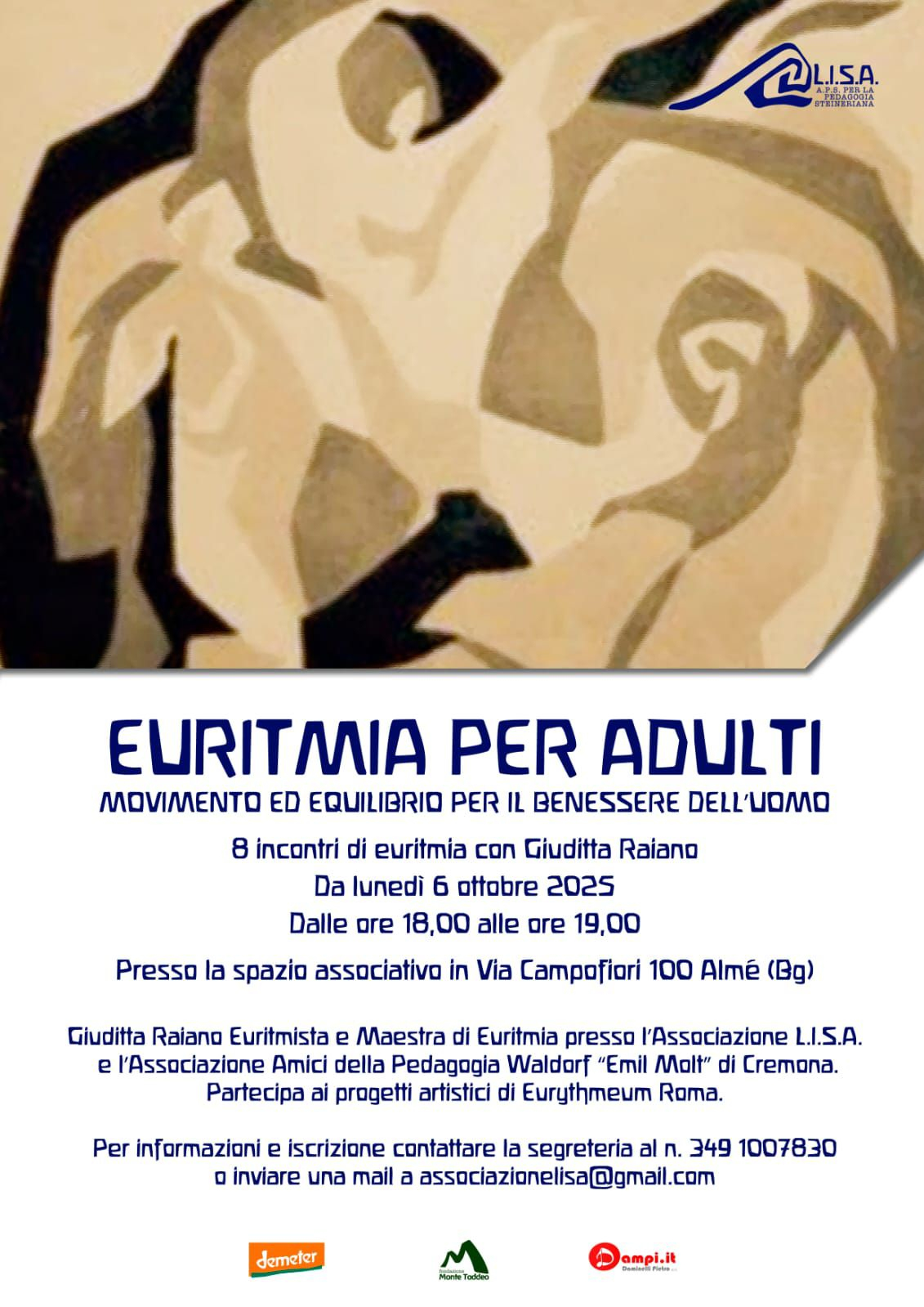 Per informazioni e iscrizione contattare la segreteria al n. 349 1007830 o inviare una mail a associazionelisa@gmail.com