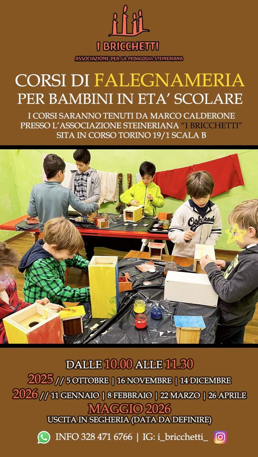 Gli appuntamenti - condotti da Marco Calderone, tecnico carpentiere e falegname dedito all'arredamento e ai giochi per l'infanzia - prevederanno una parte di narrazione che servirà ad approcciarsi al legno in maniera sensoriale/corporea, consapevole. Questo tempo dedicato all'Arte della Falegnameria consentirà di spaziare dalla costruzione di piccoli oggetti personali e per il bene collettivo, alla conoscenza del legno e dei vari tipi di trattamento.