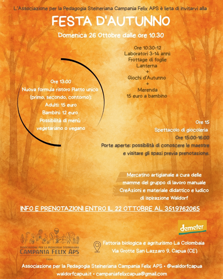 L'Associazione per la Pedagogia Steineriana Campania Felix APS è lieta di invitarvi alla FESTA D'AUTUNNO