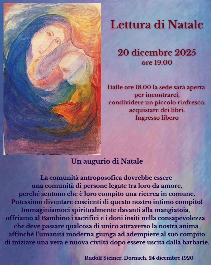 Immaginiamoci spiritualmente davanti alla mangiatoia, offriamo al Bambino i sacrifici e i doni insiti nella consapevolezza che deve passare qualcosa di unico attraverso la nostra anima affinché l'umanità moderna giunga ad adempiere al suo compito di iniziare una vera e nuova civiltà dopo essere uscita dalla barbarie.