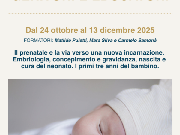 Tema: Il prenatale e la via verso una nuova incarnazione. Embriologia, concepimento e gravidanza, nascita e cura del neonato. I primi tre anni del bambino.