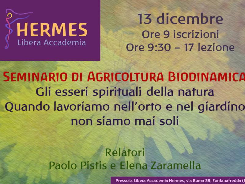 Iscrizioni entro il 3 dicembre. Per informazioni e iscrizioni: 3470128141 – 3490692334 segreteria@naturopatia-hermes.it