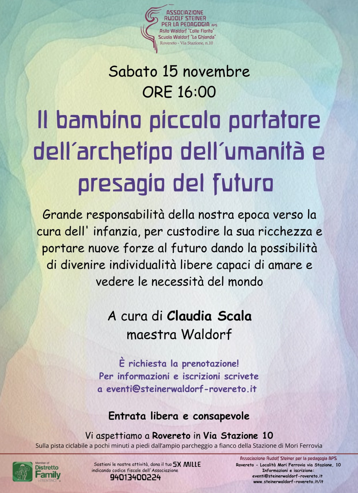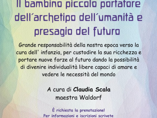 Seminario per riflettere insieme sulla grande responsabilità della nostra epoca verso la cura dell'infanzia, per custodire la sua ricchezza e portare nuove forze al futuro dando la possibilità di divenire individualità libere capaci di amare e vedere le necessità del mondo.