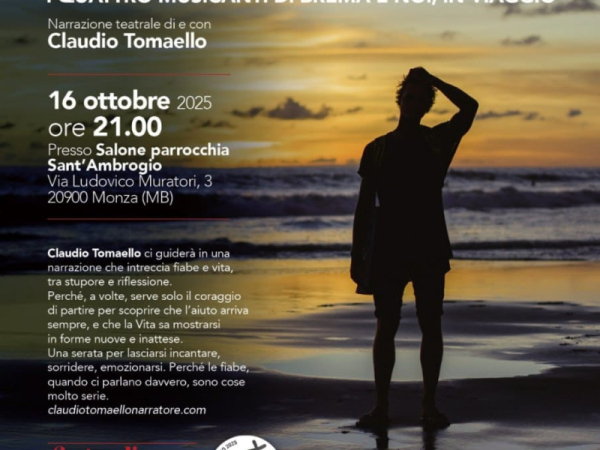 Claudio Tomaello ci guiderà in una narrazione che intreccia fiabe e vita, tra stupore e riflessione. Perché, a volte, serve solo il coraggio di partire per scoprire che l'aiuto arriva sempre, e che la Vita sa mostrarsi in forme nuove e inattese. Una serata per lasciarsi incantare, sorridere, emozionarsi. Perché le fiabe, quando ci parlano davvero, sono cose molto serie.