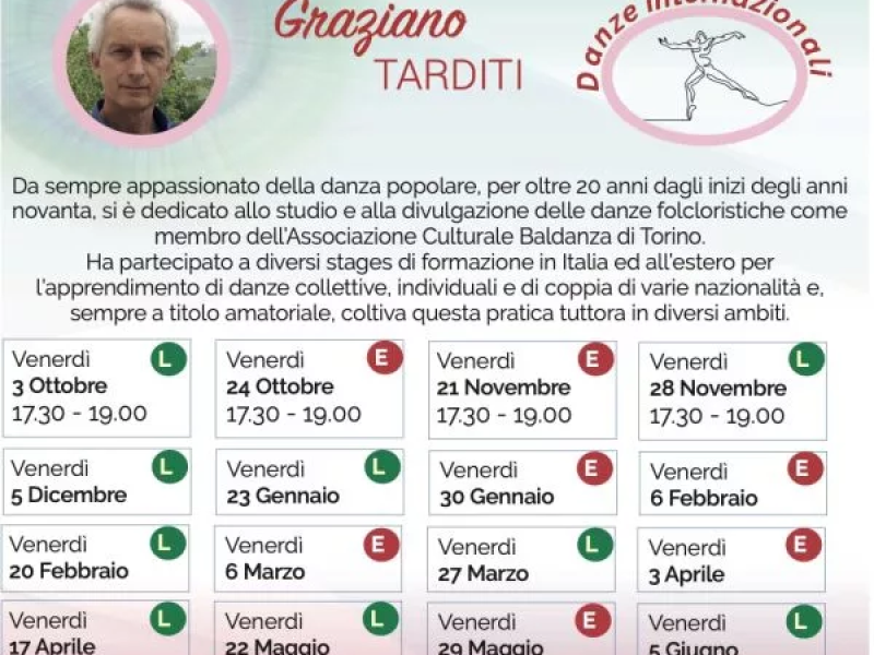 Si parte da un livello amatoriale, rivolto a tutti: la tipologia delle danze sarà scelta in modo da incontrare le esigenze di ciascuno. Sono richieste scarpe e abbigliamento adatti.