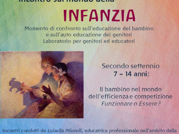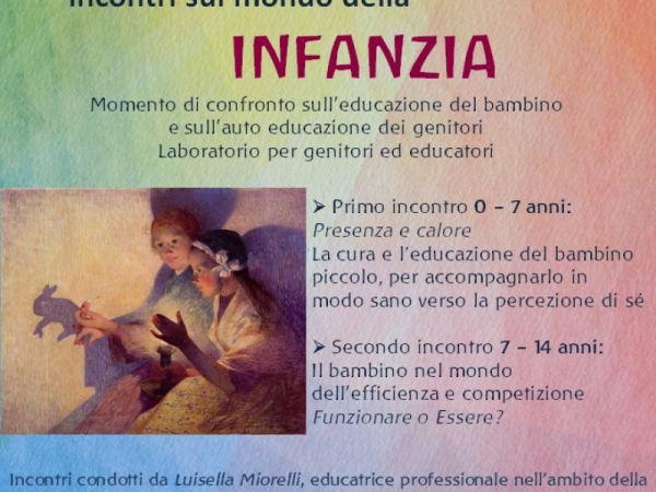 Primo incontro 10 ottobre 2025: 0 – 7 anni: Presenza e calore. La cura e l'educazione del bambino piccolo, per accompagnarlo in modo sano verso la percezione di sé