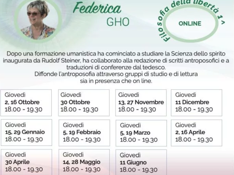 Leggiamo e commentiamo il testo, che non è un semplice libro di filosofia. Il modo in cui è scritto, la sua struttura portante e le relazioni tra i capitoli o i paragrafi ci guidano, nello studiarle, in un esercizio – inizialmente una ginnastica passiva, poi sempre più attiva – che rafforza il pensare e poco alla volta lo rende meno astratto, lo vivifica, così che divenga capace di afferrare saldamente e con maggior vigore ogni contenuto di pensiero: non solo i pensieri del libro, ma quelli che ci impegnano nella nostra vita quotidiana. La filosofia della libertà è considerato uno degli scritti più difficili di Rudolf Steiner e perciò ne proponiamo lo studio condiviso. Il cammino conoscitivo che si snoda in un gruppo di studio è stimolante, smuove domande e ricerca coralmente delle risposte.