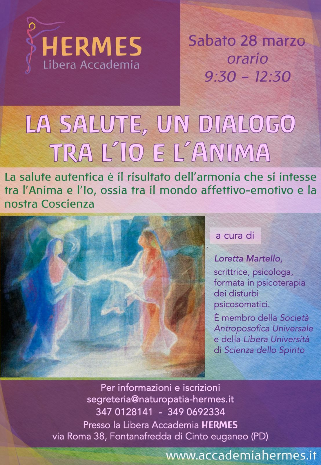 Conduce Loretta Martello, scrittrice, psicologa, formata in psicoterapia dei disturbi psicosomatici. È membro della Società Antroposofica Universale e della Libera Università di Scienza dello Spirito. Presso la Libera Accademia Hermes, via Roma 38, Fontanafredda (Padova)
