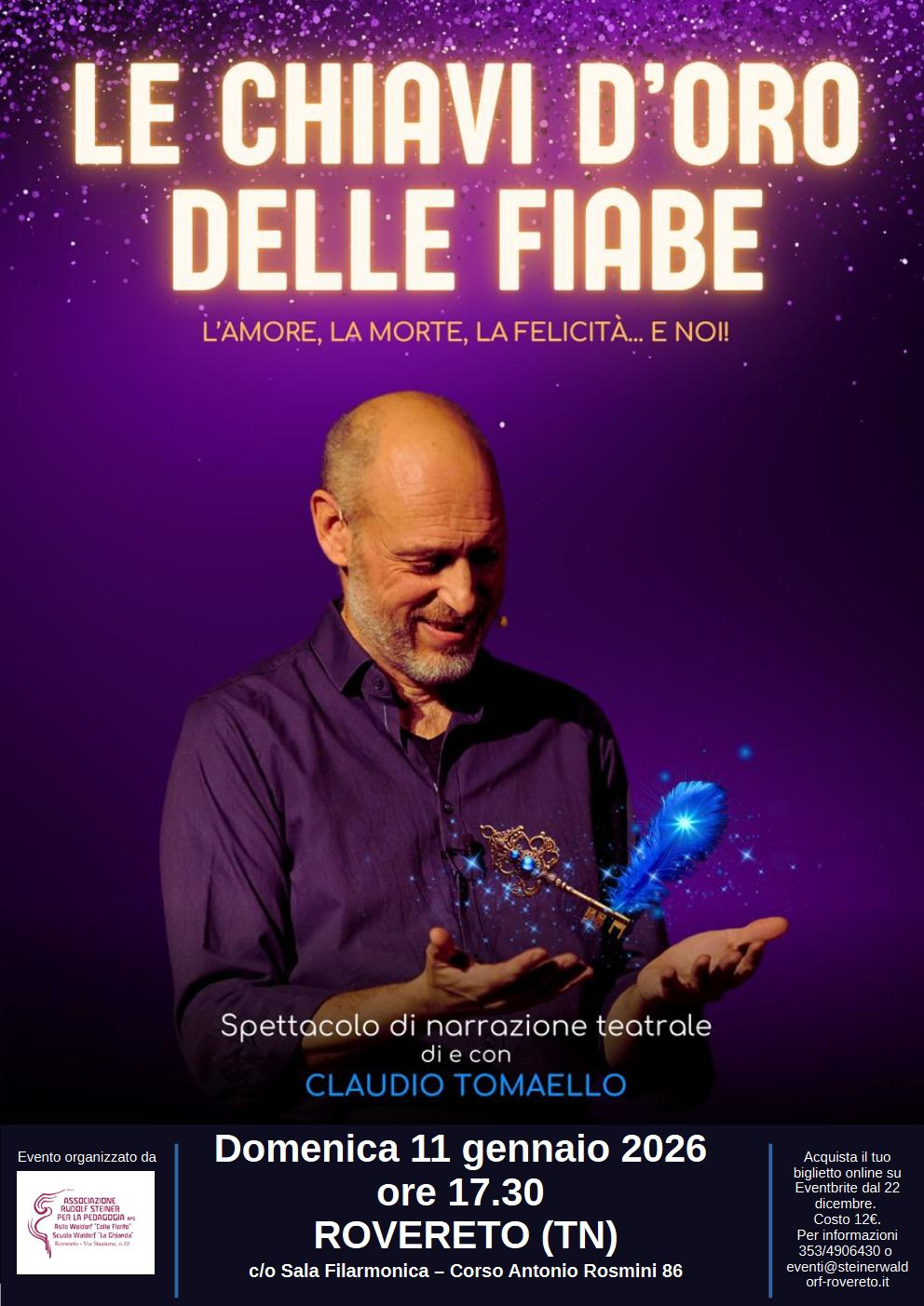 Domenica 11/01/26 alle 17.30 alla sala della Filarmonica di Rovereto dal titolo "Le chiavi d'oro delle fiabe"