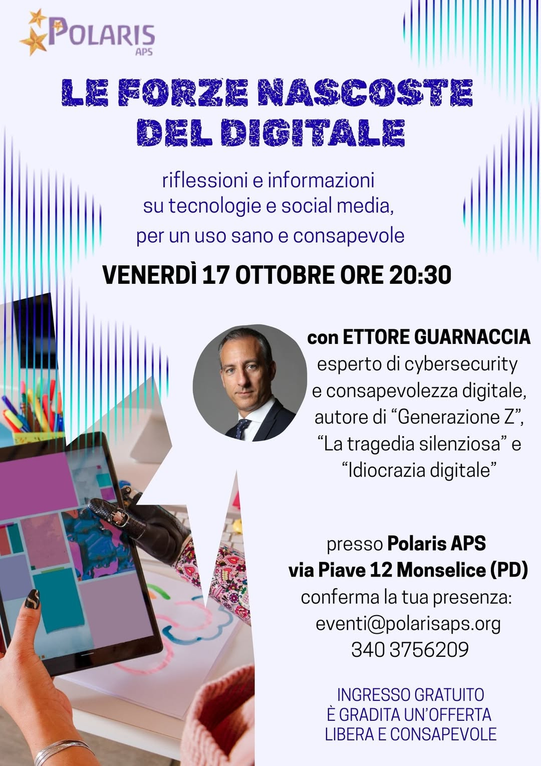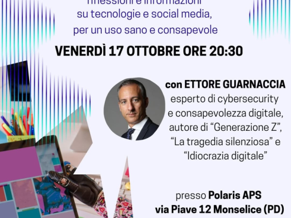 VENERDÌ 17 OTTOBRE ORE 20:30 con ETTORE GUARNACCIA esperto di cybersecurity e consapevolezza digitale, autore di "Generazione Z”, "La tragedia silenziosa" e "Idiocrazia digitale"