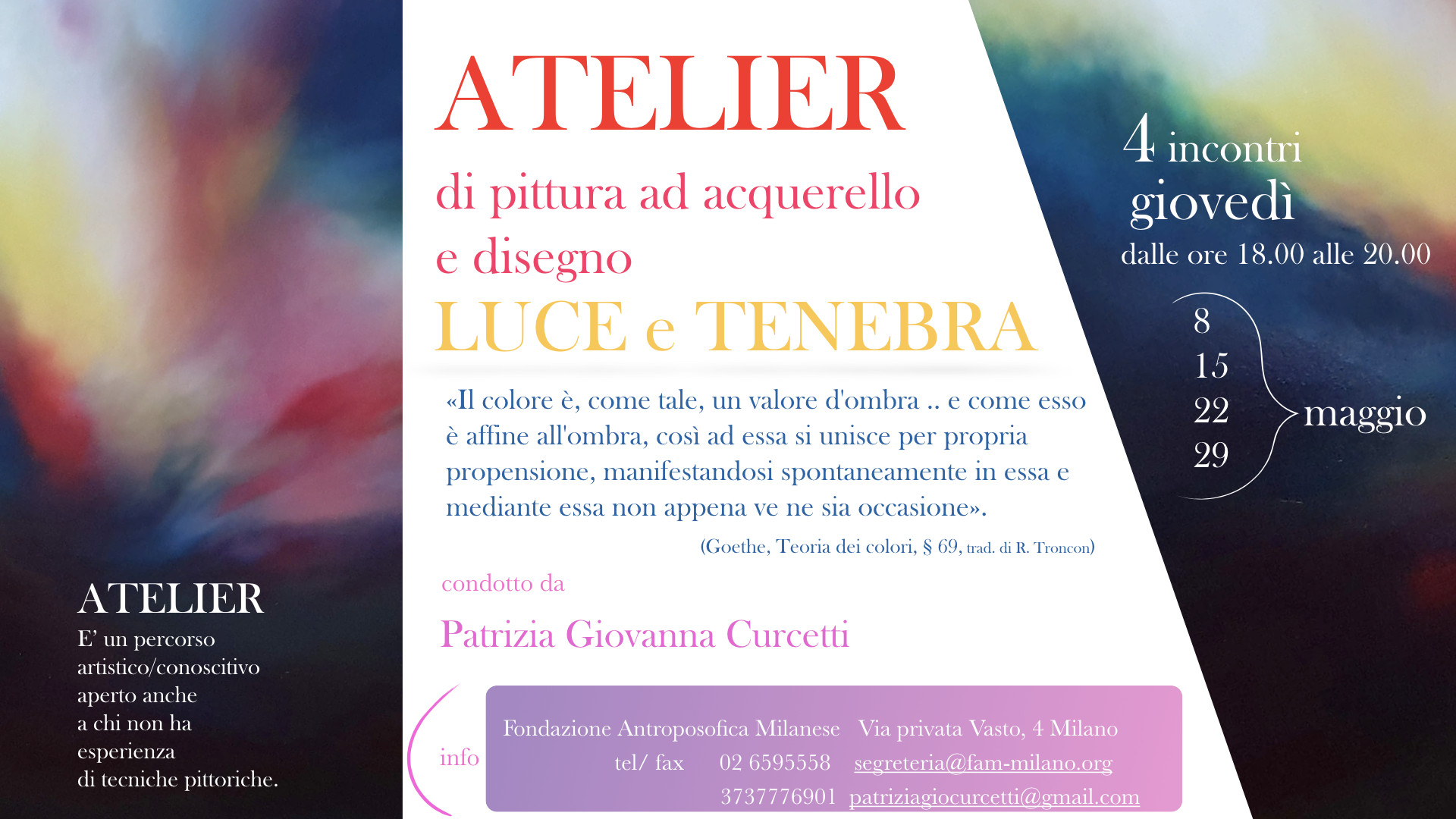 Il corso è aperto anche a nuovi partecipanti.   Non è necessario essere in possesso di tecniche artistiche.   Costo del corso €130 materiale compreso.     Gli incontri si terranno alla Fondazione Antroposofica Milanese - Via Privata Vasto, 4 a Milano     Per informazioni potete contattare Patrizia Curcetti al seguente numero 3737776901 o scrivendo una mail a patriziagiocurcetti@gmail.com