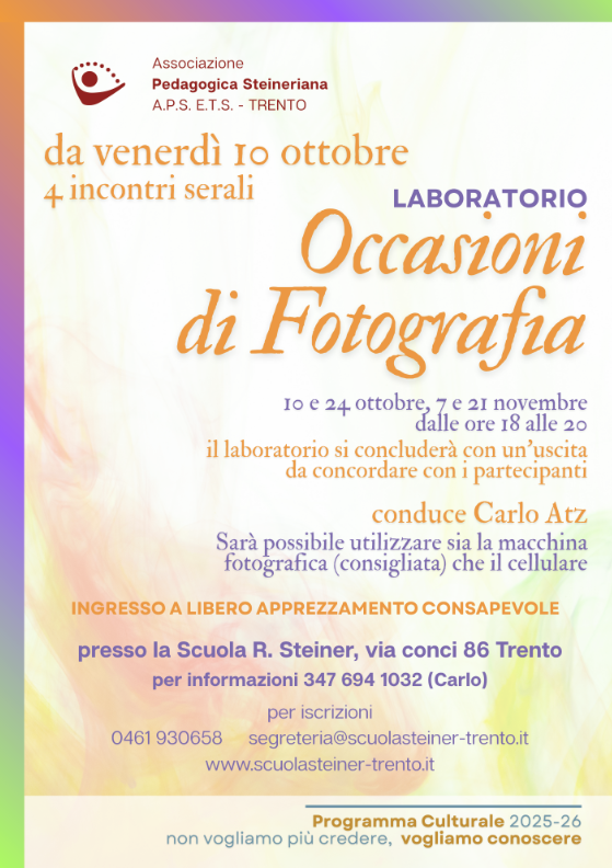 INGRESSO A LIBERO APPREZZAMENTO CONSAPEVOLE presso la Scuola R. Steiner, via conci 86 Trento