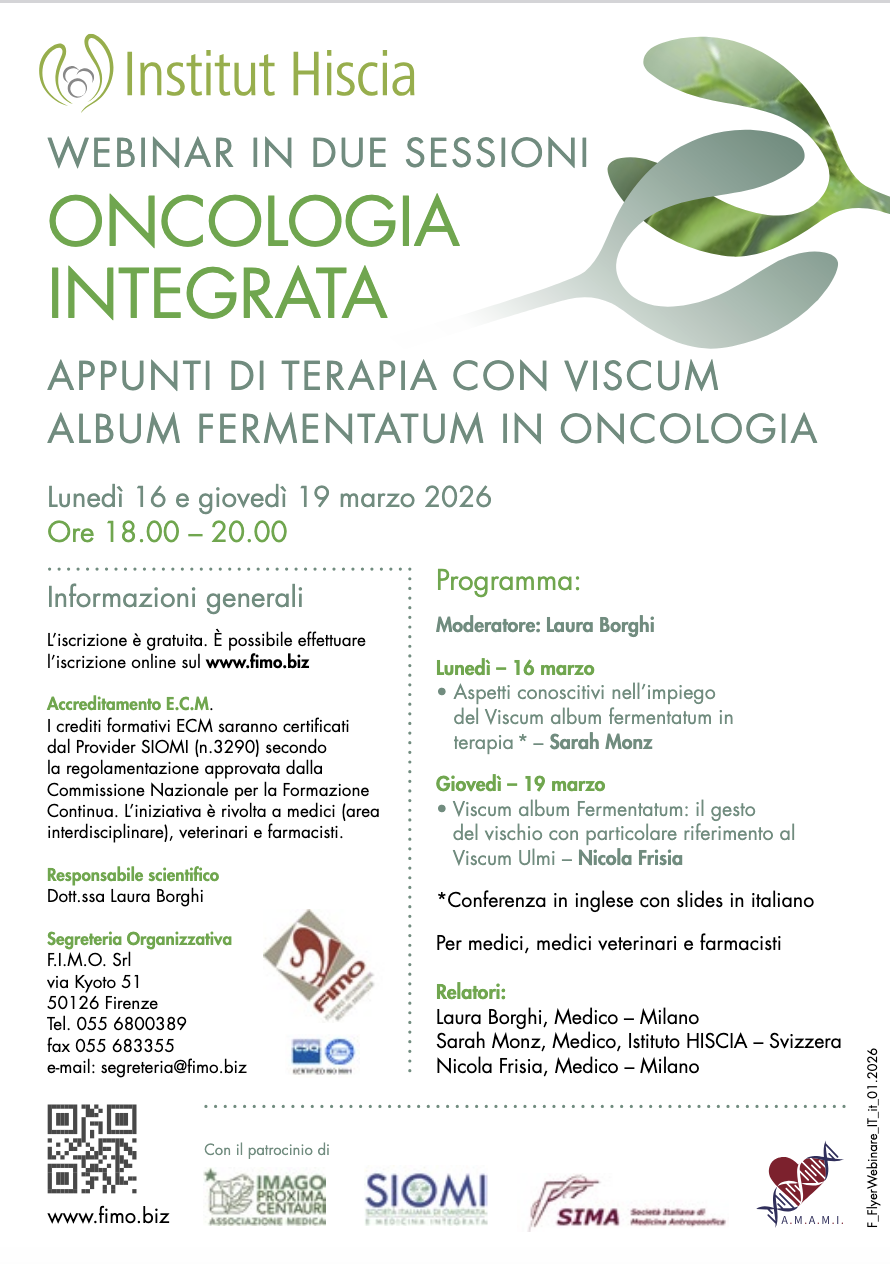 Appunti di terapia con Viscum album fermentatum in oncologia Webinar in due sessioni,