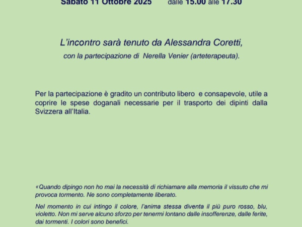 L'incontro sarà tenuto da Alessandra Coretti, con la partecipazione di Nerella Venier (arteterapeuta).