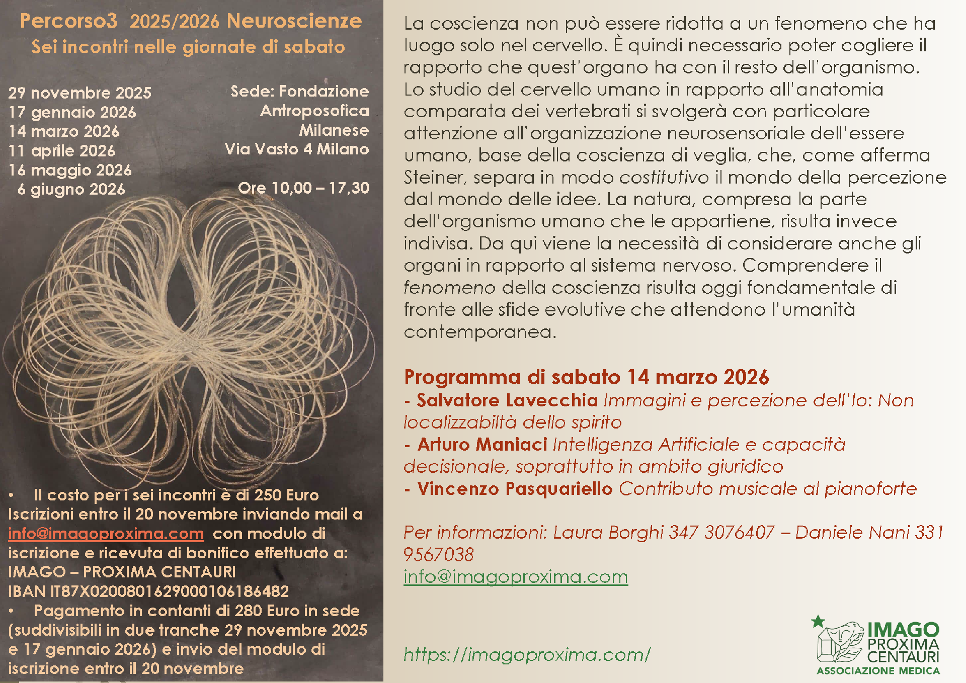 Per informazioni: Laura Borghi 347 3076407 – Daniele Nani 331 9567038 info@imagoproxima.com