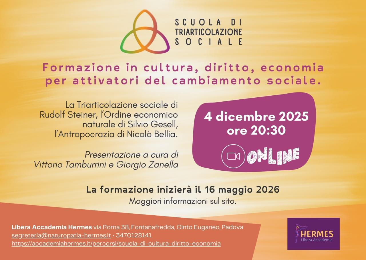 La Triarticolazione sociale di Rudolf Steiner, l’Ordine economico naturale di Silvio Gesell, l’Antropocrazia di Nicolò Bellia.
