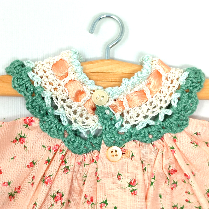 Vestitino estivo rosa a fiori in puro cotone con uncinetto