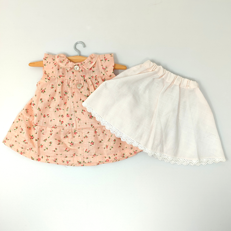 Gonna a fiori e magliettina rosa - per bambole