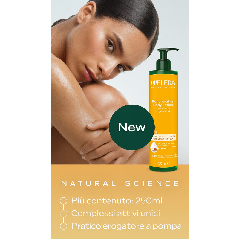 Lozione corpo rigenerante, lenisce e protegge la pelle, rigenera e rafforza la barriera cutanea.