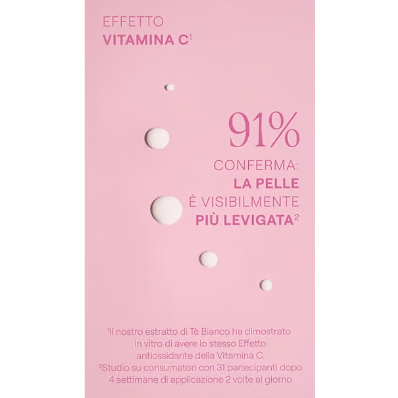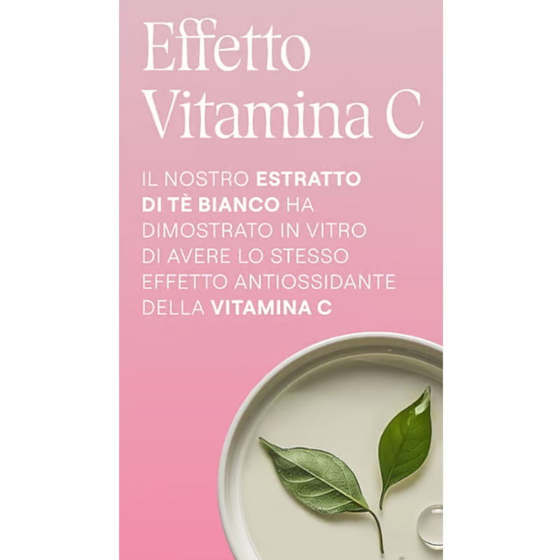 Con effetto vitamina C: è stato dimostrato in vitro che il nostro estratto di tè bianco ha lo stesso effetto antiossidante della vitamina C.