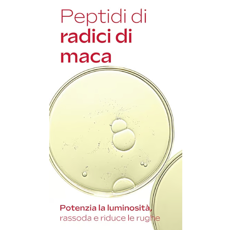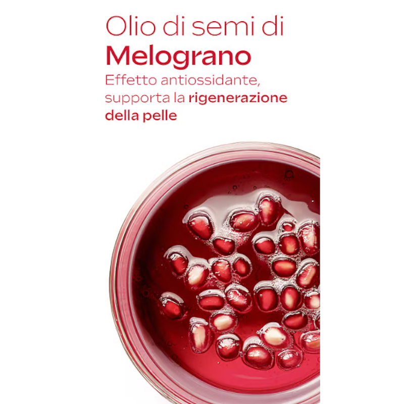 L'olio di semi di melograno biologico e i peptidi della radice di maca biologica supportano efficacemente il processo di rigenerazione della pelle.