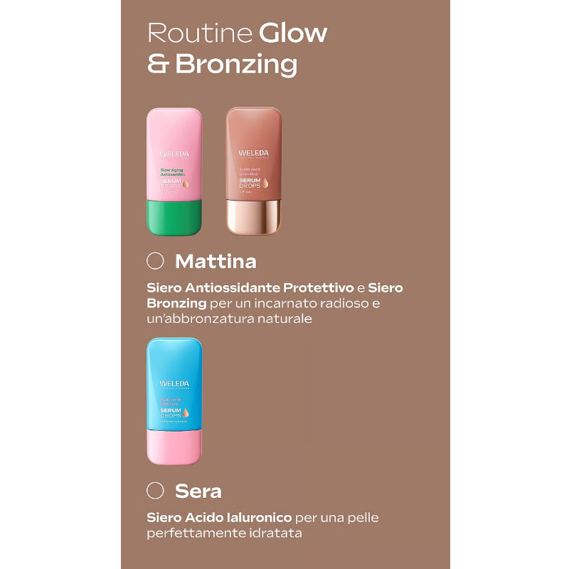 Desideri un incarnato naturalmente baciato dal sole? Il Siero Bronzing di Weleda dona alla pelle un’immediata luminosità ambrata grazie ai pigmenti minerali, idratandola intensamente fin da subito. Per un effetto abbronzato sano e naturale, come dopo una giornata al sole – ma senza i danni dei raggi UV.