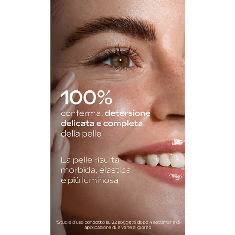 Modo d'uso: Con la pelle umida, preleva una piccola quantità di gel nel palmo delle mani. Applica delicatamente su tutto il viso, il collo e il décolleté, evitando il contorno occhi, e massaggia con cura con movimenti circolari, facendo scorrere le mani dal centro del viso verso l'esterno. Questo aiuta a pulire in profondità i pori e a ridurre l'eccesso di sebo. Risciacqua accuratamente con acqua tiepida. È fondamentale detergere il viso mattina e sera.