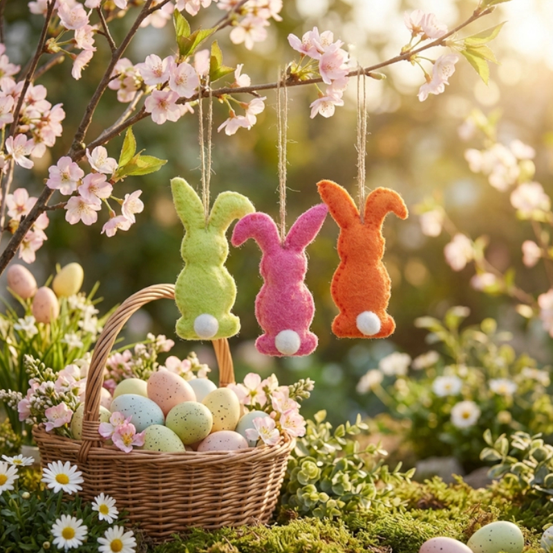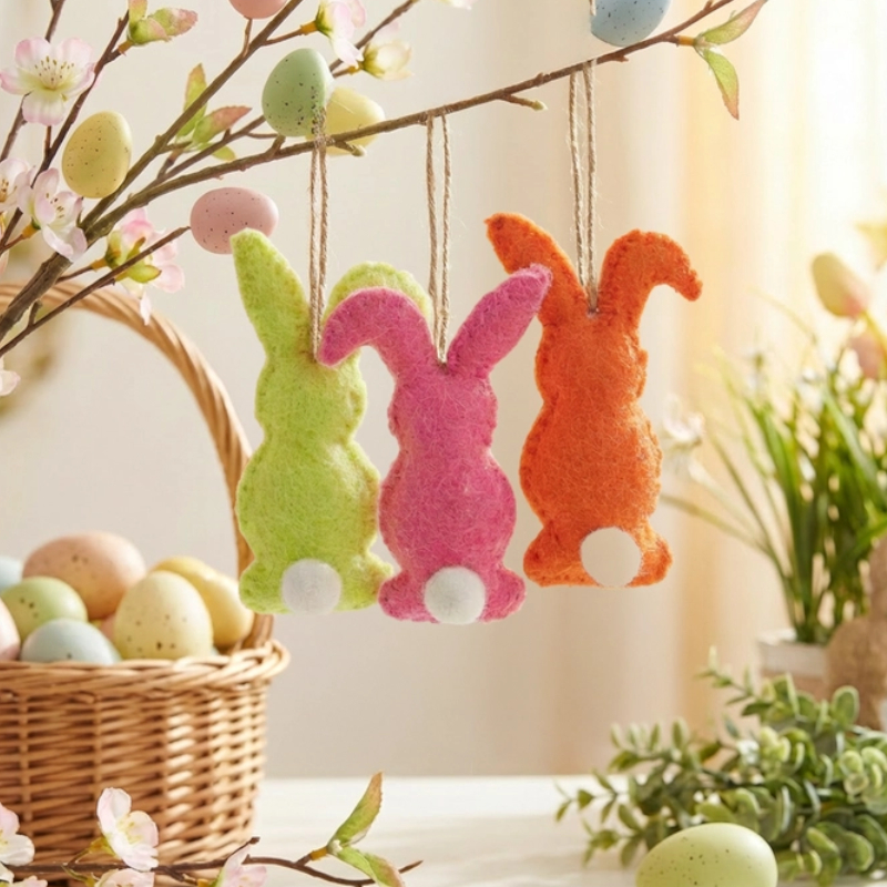 Coniglietti in feltro di Pasqua da appendere - 3 pezzi