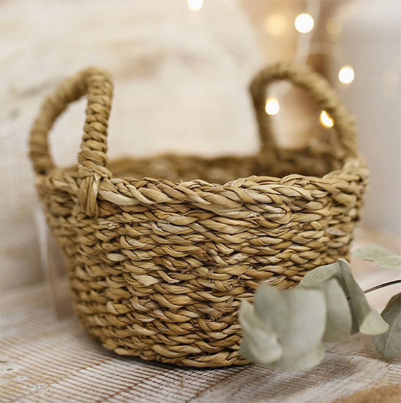 Un bellissimo cestino rotondo con manici.