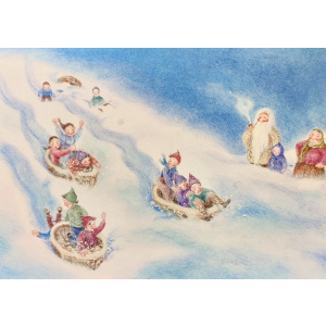 Cartolina: Gara di slittino dei nanetti nei gusci di noce