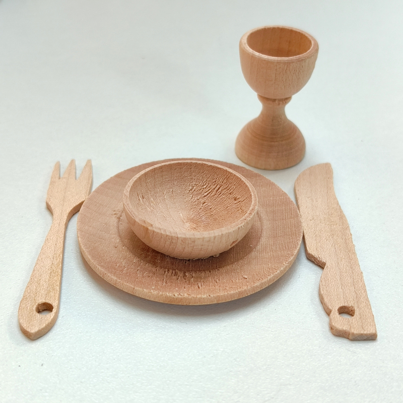 Mini kit vassoio, bicchiere e bottiglia in legno - per bambole