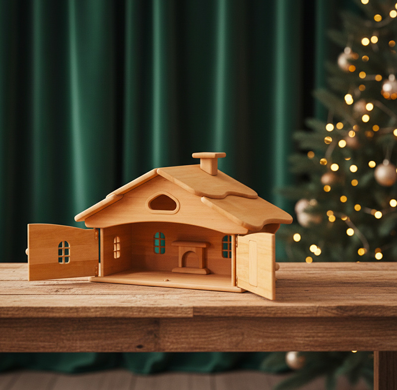 Capanna per il presepe o stalla in legno per gli animali - con stella cometa