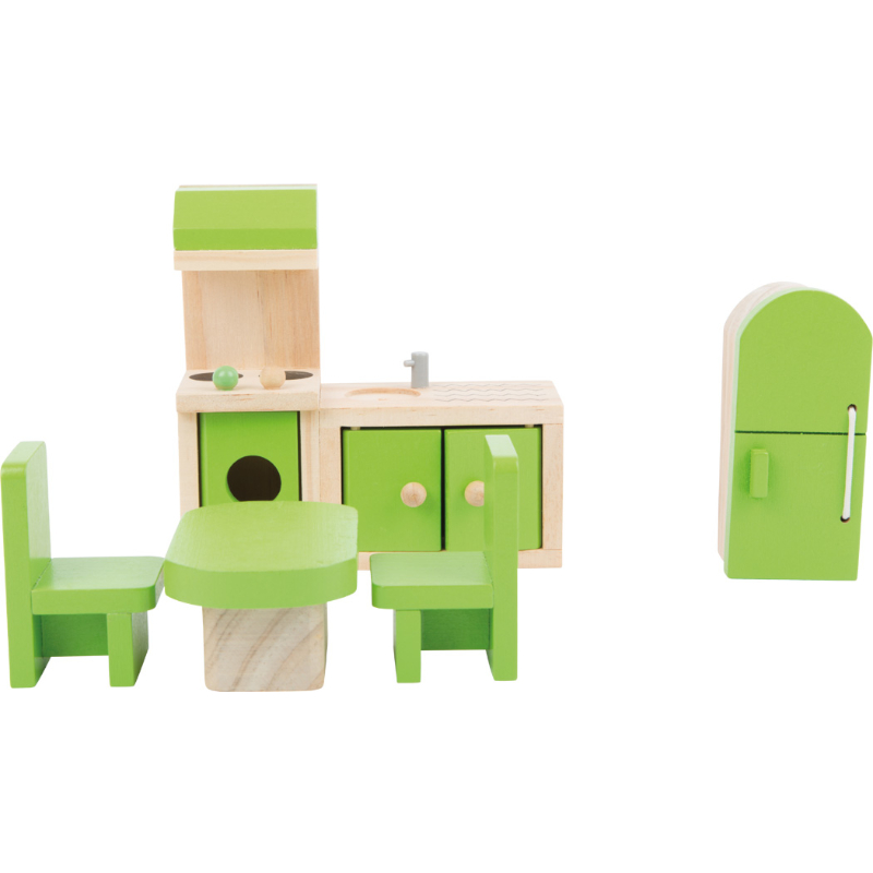 Questo set di 5 pezzi per la cucina è fatto su misura per le bamboline piegabili e prodotto in legno massiccio particolarmente duraturo: nella casa delle bambole ogni volta il divertimento è assicurato!