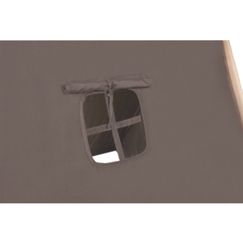 Questa moderna tenda per bambini offre tanto spazio al suo interno e, grazie alla finestra laterale, offre anche la possibilità di guardare fuori.
