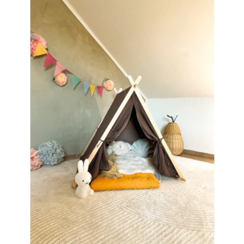 Giocare, leggere, coccolarsi! Questa tenda gioco da interno con la struttura in legno e una stoffa che la ricopre è il rifugio ideale per ore di gioco creativo in cameretta.