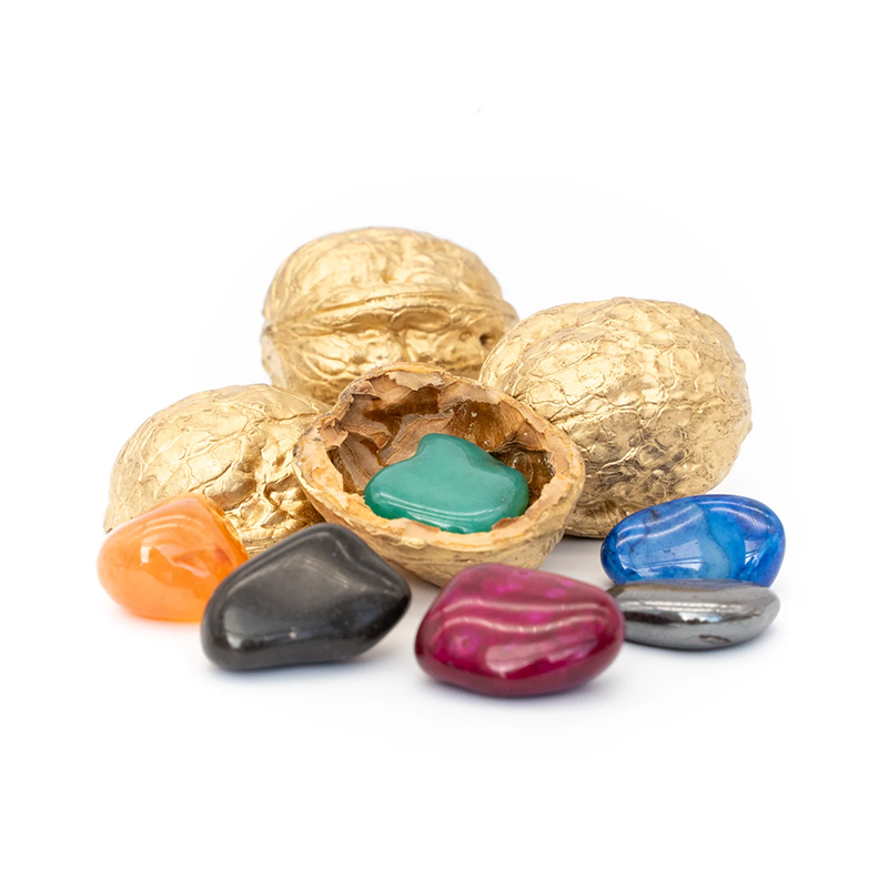 Quando spaccherete il gheriglio troverete un bellissimo minerale in pietra dura liscia...