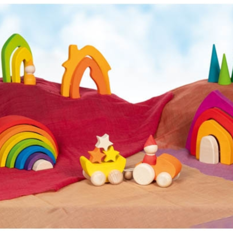 Un omino con il suo carretto va in giro a raccolgiere le stelle