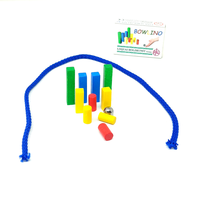 Trova un tavolino, posiziona i birilli, metti la corda intorno per creale la pista, e infine gioca!