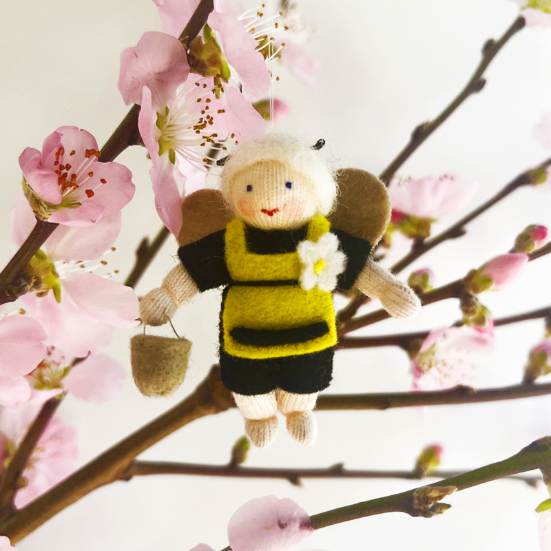 Bimbo Ape con cestino pronto a ronzare intorno ai fiori