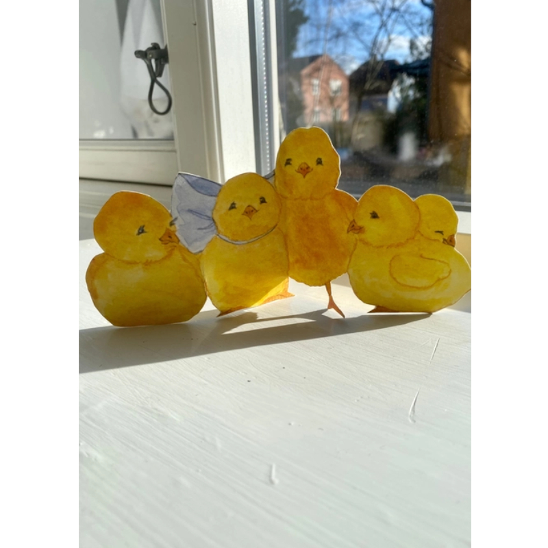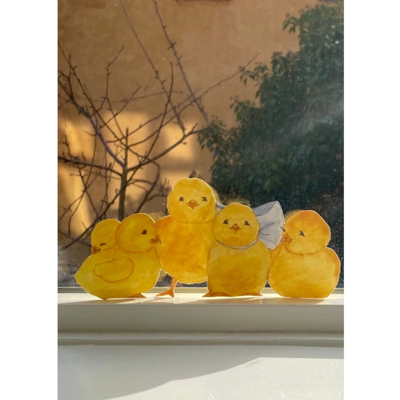 Ritaglia i 5 piccoli pulcini e posizionali sul davanzale della finestra o sulla tavola di Pasqua