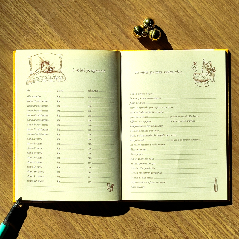Un bellissimo diario per i genitori, per annotare tutti gli eventi del bambino e rivivere con lui/lei le sue prima esperienze.