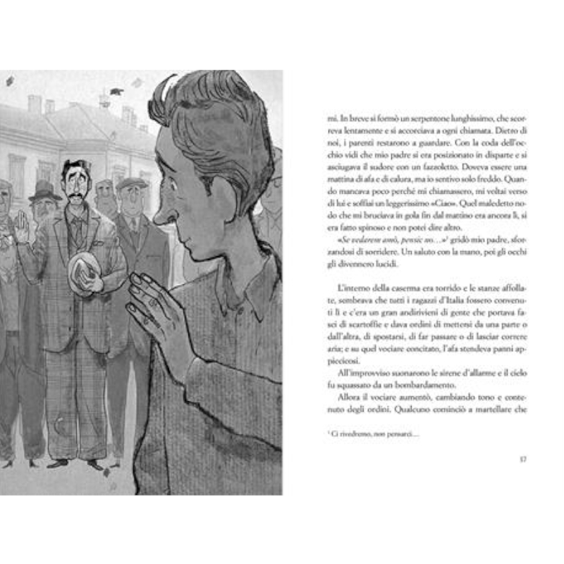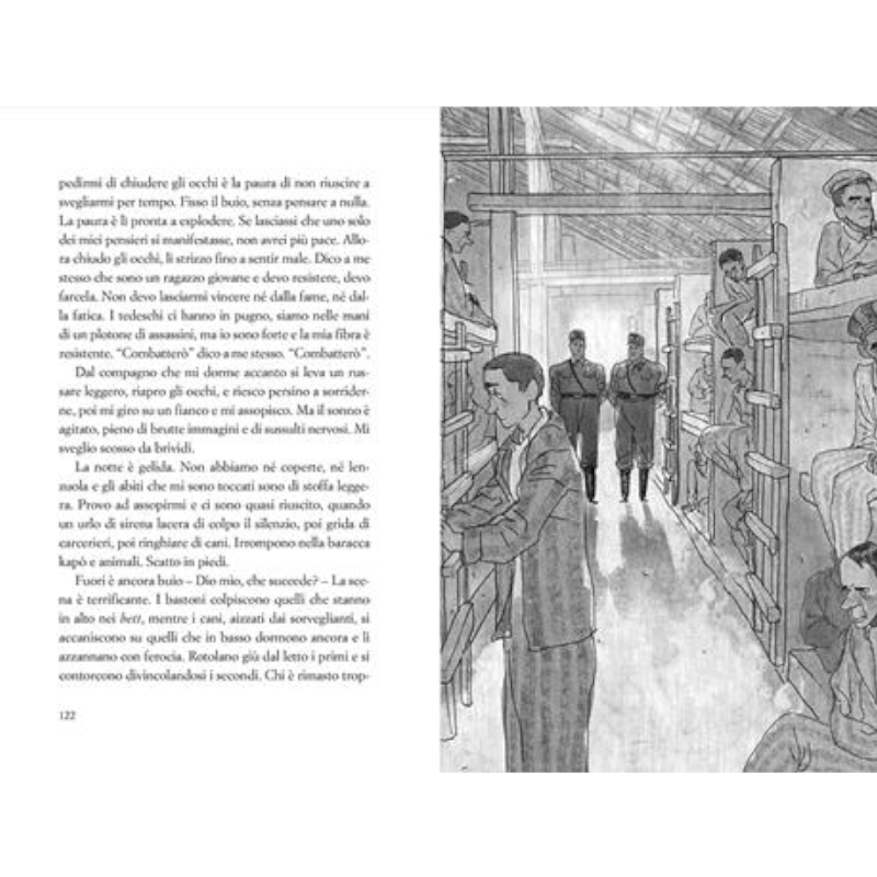 Venanzio racconta la sua esperienza nel campo, la progressiva perdita di dignità e l’abbrutimento, la fame, le angherie, le violenze, il freddo.
