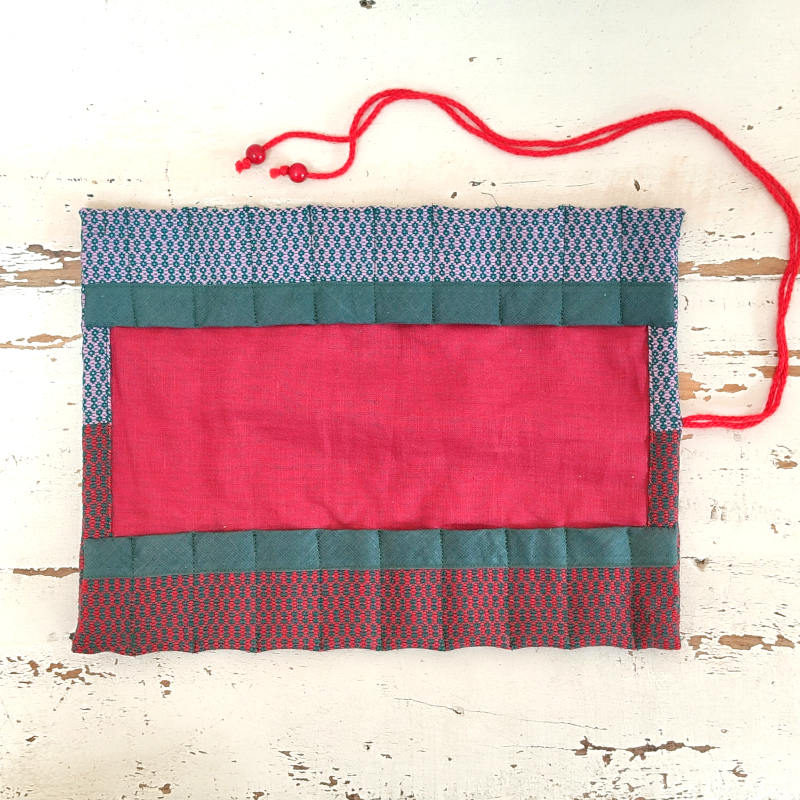 Questo astuccio è fatto a mano realizzato con una robusta tela in cotone e bordi di colore in contrasto,
