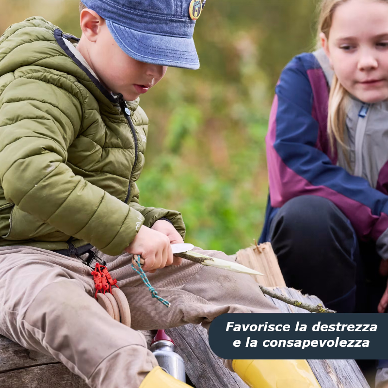 Ideale come coltello da esterno per bambini e parte della vostra attrezzatura, è un'ottima idea regalo per piccoli e grandi avventurieri. Imballalo e scopri il mondo con il tuo strumento!