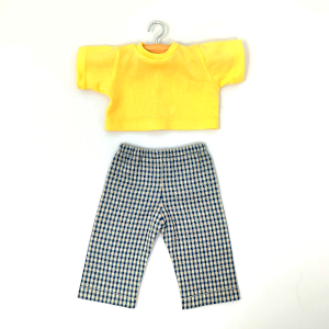 Pantaloni a scacchi e magliettina gialla - per bambole